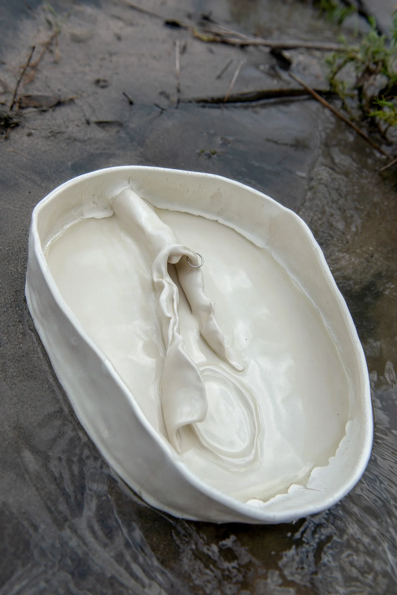 Not Quiet Vulva: Porcelain dyed with Mason Stain